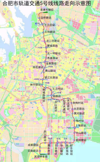 合肥市軌道交通5號線項目概況:線路為南北走向,南起濱湖新區(qū)的貴陽路站,北至廬陽區(qū)汲橋路站,全長40.2公里,全線為地下線,共設(shè)車站33座(其中云谷路站、高鐵站、蒙城路站已與1號線、3號線同步實施),線路在官塘設(shè)車輛段1座、在濱湖設(shè)停車場1座,車輛采用B型車、6輛編組。