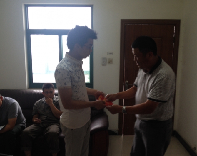 4.6月25日,在辦公樓二樓陳總辦公室,陳總和馬總對(duì)在平日里辛勤工作的公司車隊(duì)修理工們進(jìn)行了表彰,其中,修理工劉洋師傅在車隊(duì)駕駛員滿意度調(diào)查中,獲得的滿意度最高。為樹立典型,發(fā)揮先進(jìn)員工的帶頭作用,公司對(duì)劉洋師傅進(jìn)行了獎(jiǎng)勵(lì),借此表示對(duì)所有奮斗在一線,拼搏在一線的員工的贊揚(yáng),感謝他們?yōu)榱斯景l(fā)展所做出的突出貢獻(xiàn)。
